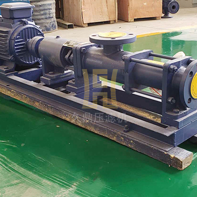 G 型系列單螺桿泵的工作原理是利用單頭螺旋型轉子在雙頭螺旋型內腔的定子中作偏心轉動。定子和轉子間形成密封腔,在轉子轉動時.密封腔容積變化使液體由吸入端不斷向排出端涌出,實現泵的愉送功能。