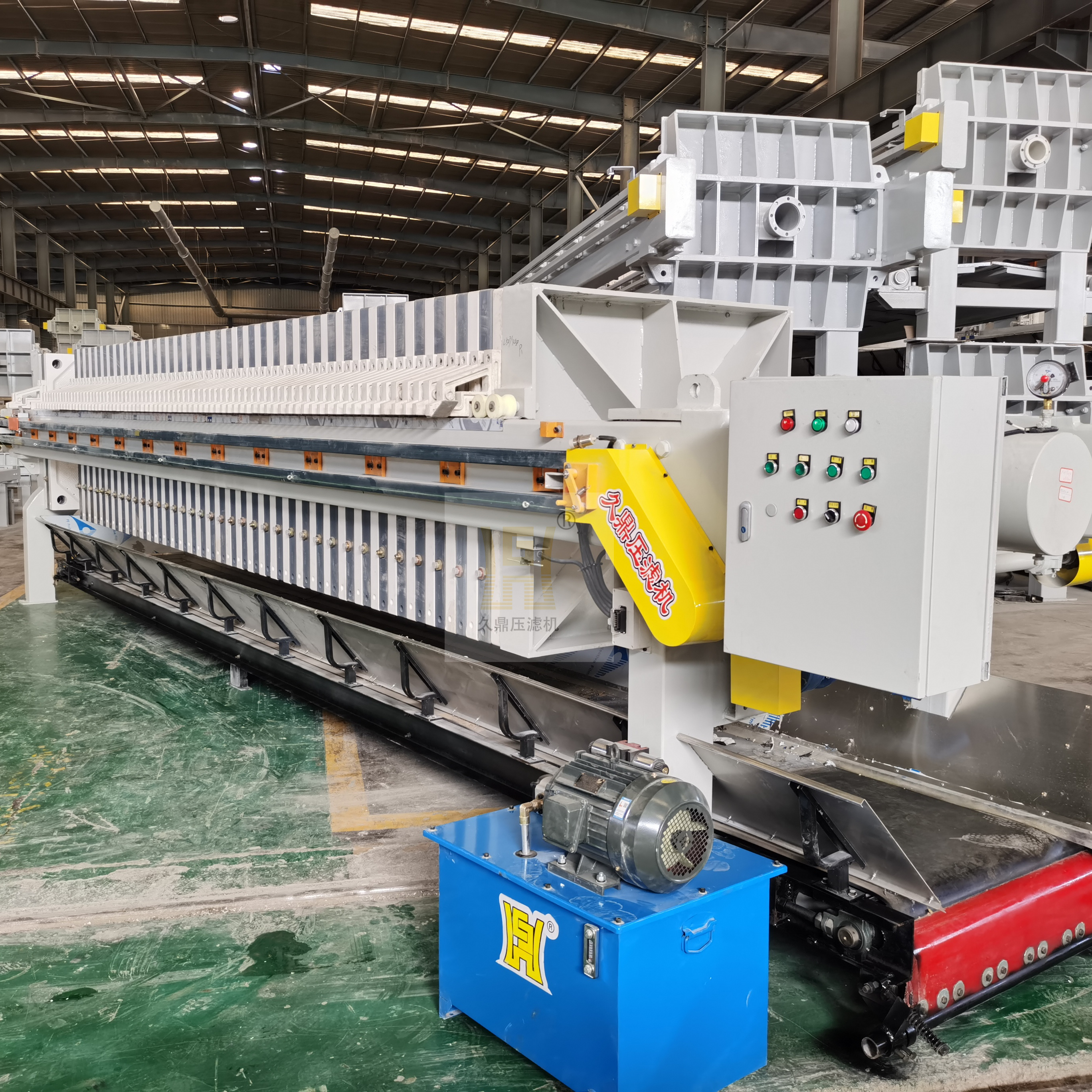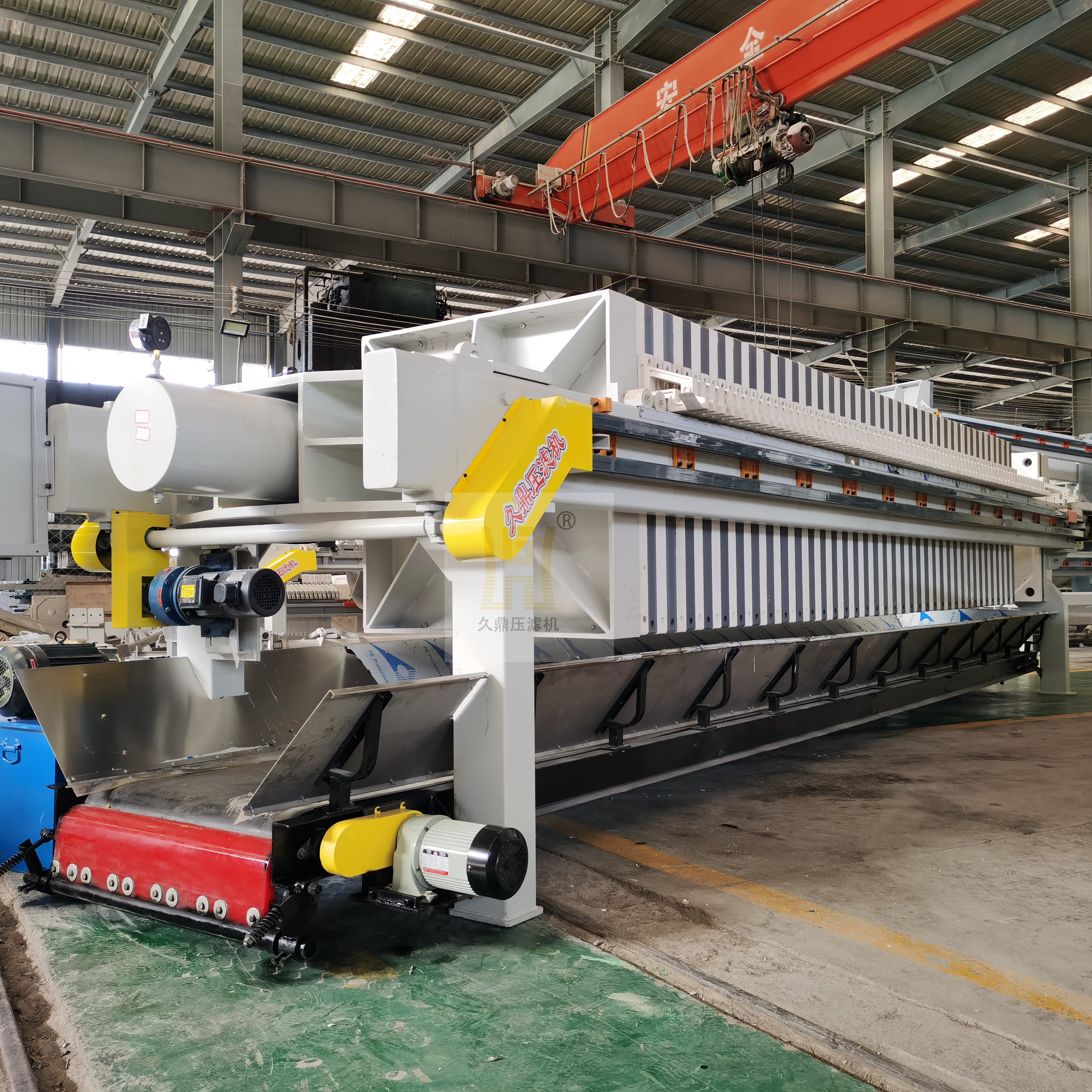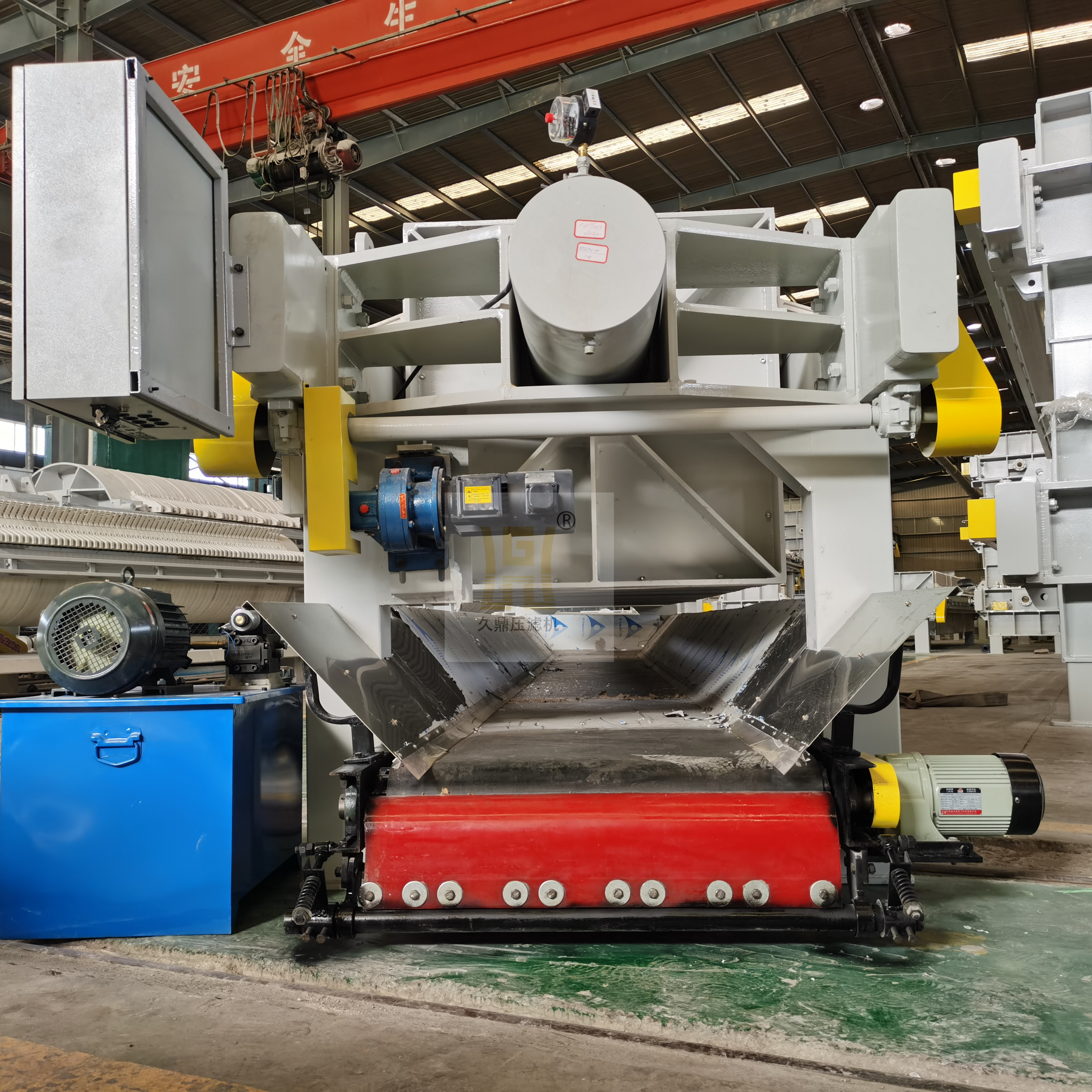 皮帶輸送系統(tǒng)在壓濾機(jī)濾板下方配置了皮帶輸送機(jī),將過(guò)濾形成的濾餅輸送至壓濾機(jī)一端,可水平、傾斜提升布置。