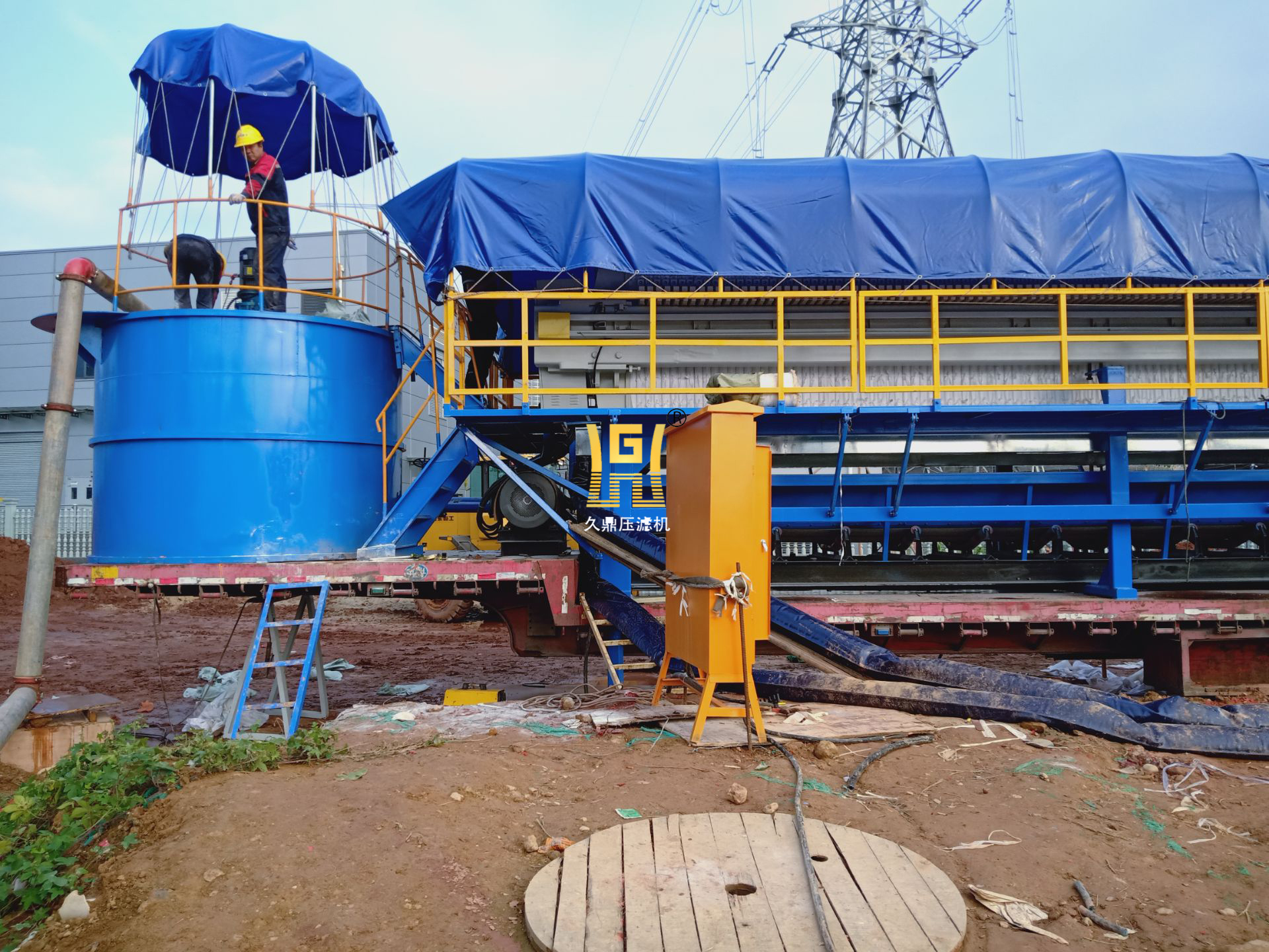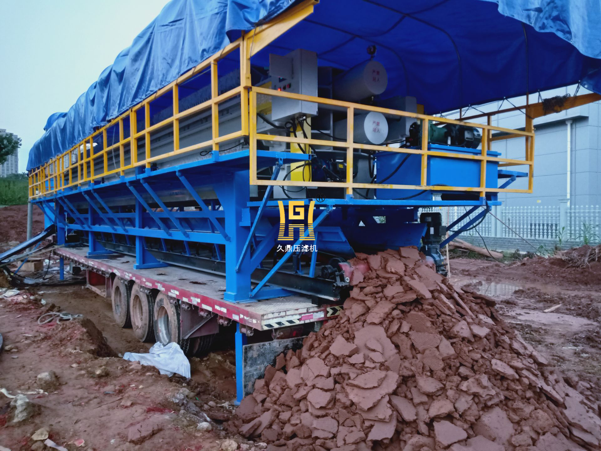 打樁建筑、隧道、盾構(gòu)、環(huán)境污染污水應(yīng)急處理等工程施工中所產(chǎn)生的廢棄泥漿或污水現(xiàn)場(chǎng)脫水;對(duì)施工產(chǎn)生的廢棄泥漿進(jìn)行現(xiàn)場(chǎng)脫水處理,形成泥餅與清水,使原來的廢棄泥漿外運(yùn)排放改變?yōu)樵镣膺\(yùn)處置,分離出的清水能全部回收用;壓濾機(jī)放置于17.5的平板車上,便于工地轉(zhuǎn)場(chǎng)施工。