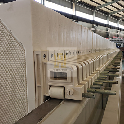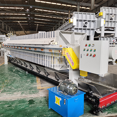 2000型自動拉板廂式壓濾機所具有的自動拉板裝置,可以自動移動濾板進行卸除濾餅,從而提高自動化程度。另外,還可以選配自動接液翻板、自動水清洗濾布等系統,來實現設備操作的智能化。同時,整個設備可以通過PLC控制,實現濾板壓緊、集液板合并和開啟、以及濾板的松開和拉開等操作。因此,可以大大提高工作效率和節省人力時間成本。