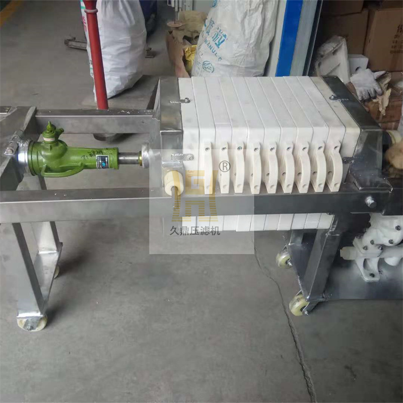 千斤頂壓緊壓濾機是手動壓緊壓濾機的一種,適用于小規模的污水處理,也可用于實驗室。該壓濾機利用螺旋千斤頂作為壓緊裝置,操作簡單,無需電源,經濟實用。千斤頂壓緊壓濾機是一種間歇式的加壓過濾機設備。整機結構設計合理,性能穩定可靠,維修方便,適用范圍廣,是懸浮液分離的理想設備。