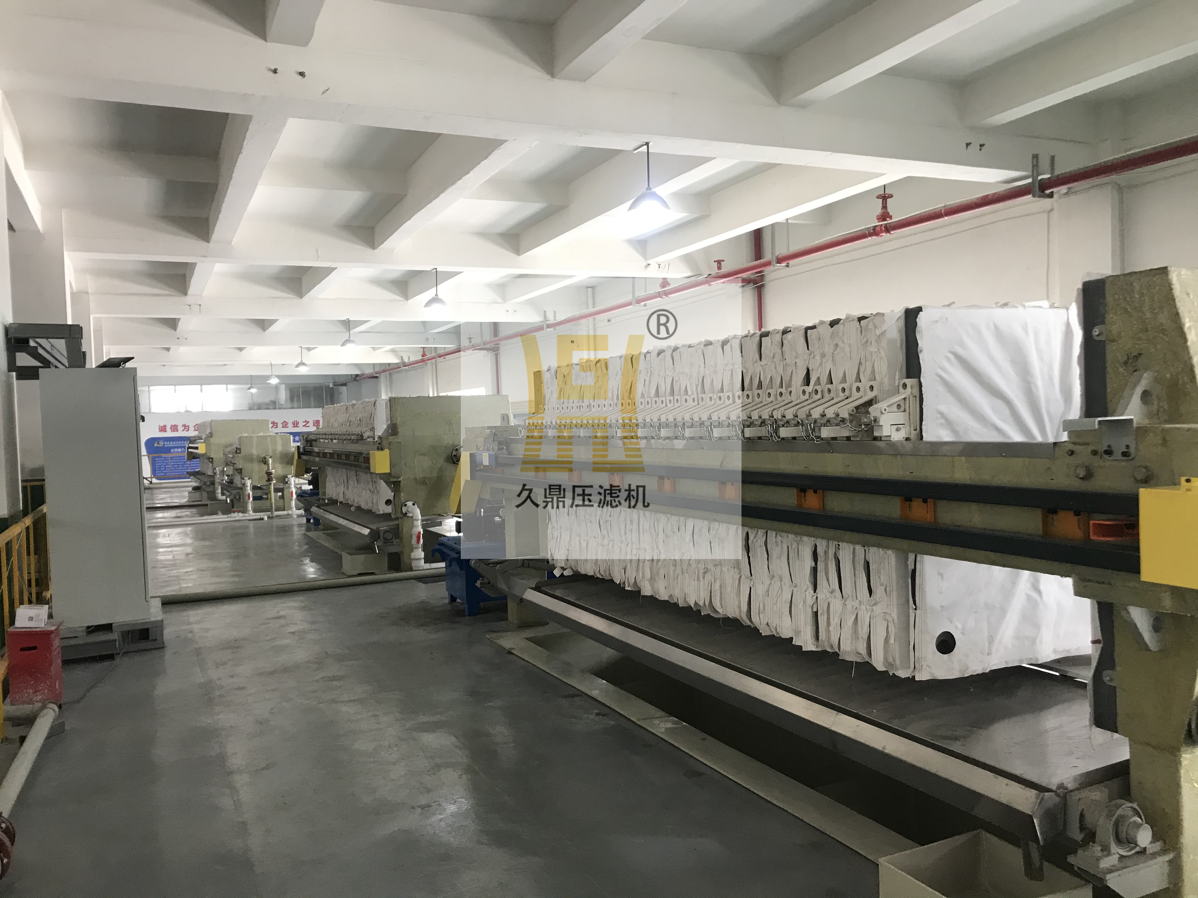 ??1、壓濾機由機架、濾板、壓緊系統(手動、機械、液壓三種形式)和電氣控制柜組成。